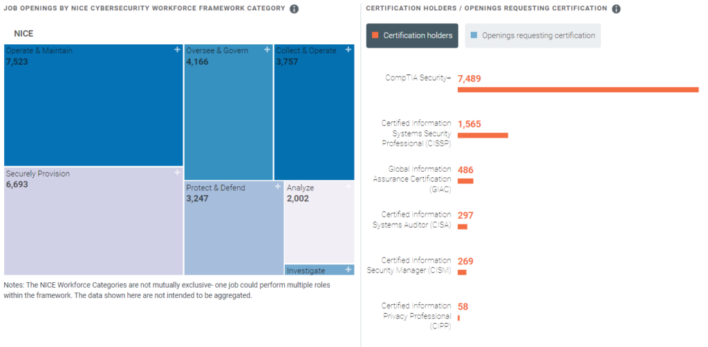 Alabama being one of the smaller economies in the US, it’s not surprising that the size of its cybersecurity workforce is also smaller than most states. Cyberseek tells us that, there are 17,761 cybersecurity professionals were employed in Alabama.