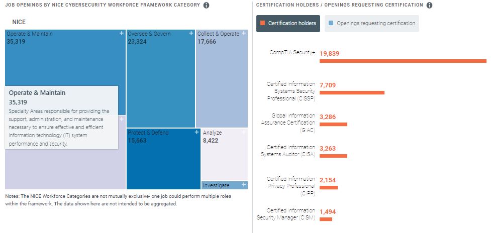 According to CyberSeek, there are 125,283 people employed in cybersecurity roles across California, and there are 55,367 cybersecurity job openings around the state.