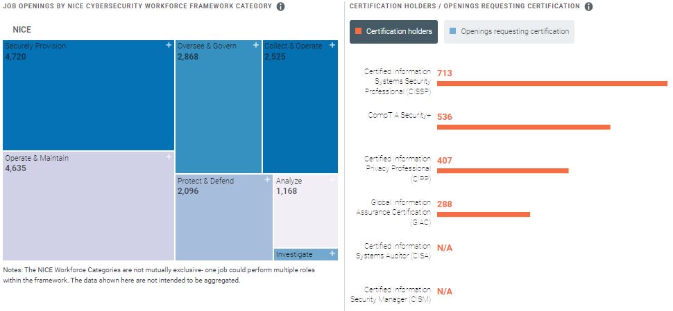 - Skills Required: According to Cyberseek, candidates must be proficient in Cloud Security, Preventative Antivirus, NIST Standards, Security Foundation & Threat Intelligence, Information Security, and Enterprise Mission Assurance Support Service.