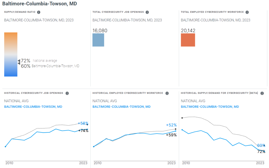 According to the US News & World Report, Maryland has the world’s largest government-trained cyber workforce, with approximately 110,000 cyber-related professionals in engineering and data science. As the state’s most populous city, Baltimore has many of these opportunities and plays a crucial role in the global effort to combat cybercrime.