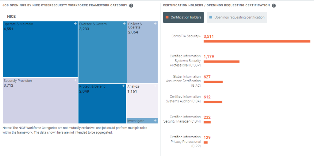 According to 2023 CyberSeek data, a cybersecurity job placement data aggregator, there are 6,991 cybersecurity positions open in the state of Tennessee with 15,415 currently employed.